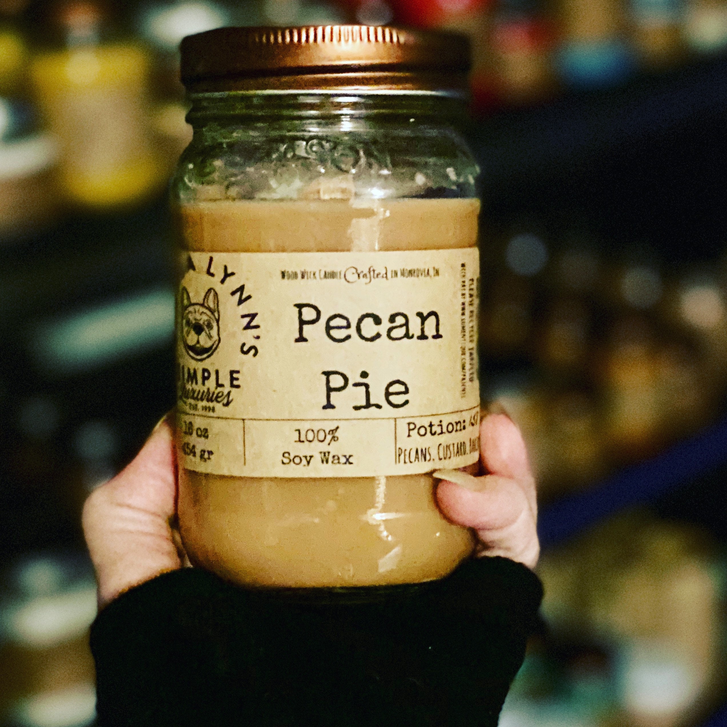 The pecan pie candle smells exactly how it sounds. But not too overpoweringly sweet. Loved the other items I received as well! The hand sanitizer freebie was awesome ❤️ Just completed my second order. I keep coming back because it’s not easy to find woodwick candles and hers are awesome! Love the sound that they make.